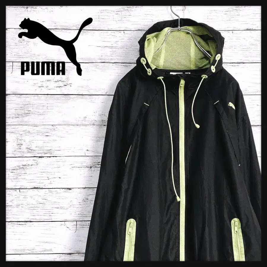 am5143 푸마 나일론 후드티 블랙 옐로우 그린 L 원 포인트