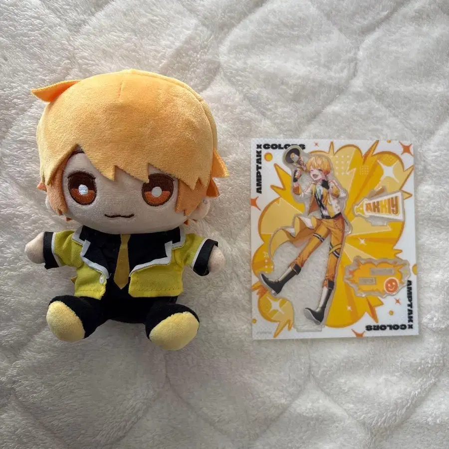 AMPTAK x COLORS의 아키 씨 굿즈입니다. - 캐릭터명: 아키 - 색상: 옐로우 컬러, - 사이즈: 약 20cm 방문해 주셔서 감사합니다. 봉제 인형은 양도받은 것이므로 약간의 얼룩이 있습니다. AMPTAK