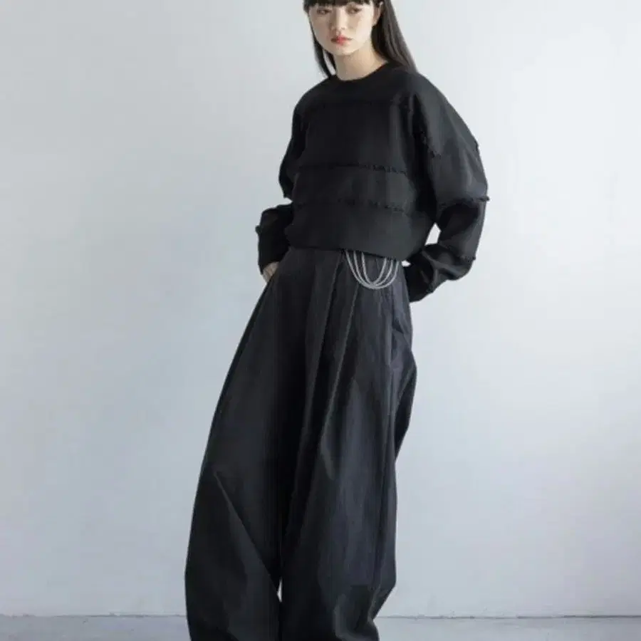 [ YUW ] 패널 멜로 니트 풀오버 블랙