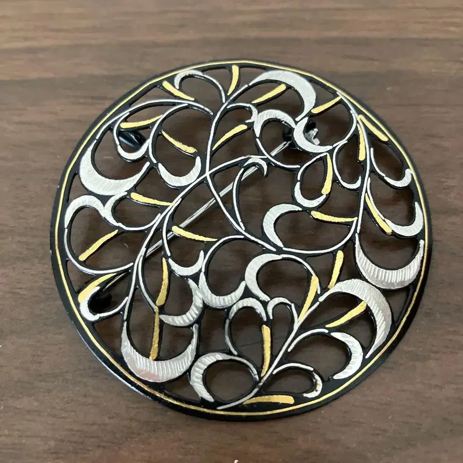 교토 전통 공예 나카지마 상감 시스루 당초 브로치 겸 펜던트 탑 2way