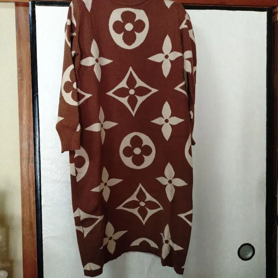브라운 꽃무늬 7부 소매 원피스