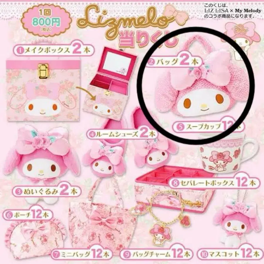 마이멜로디 리즈멜로 백 봉제 인형 가방 페이스형 산리오 복권