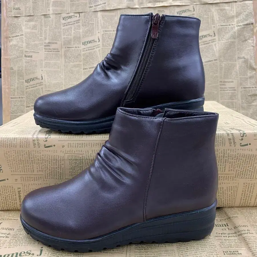 새상품 여성용 24.0cm 주름 가공 내지퍼 부츠 6466 짙은 갈색