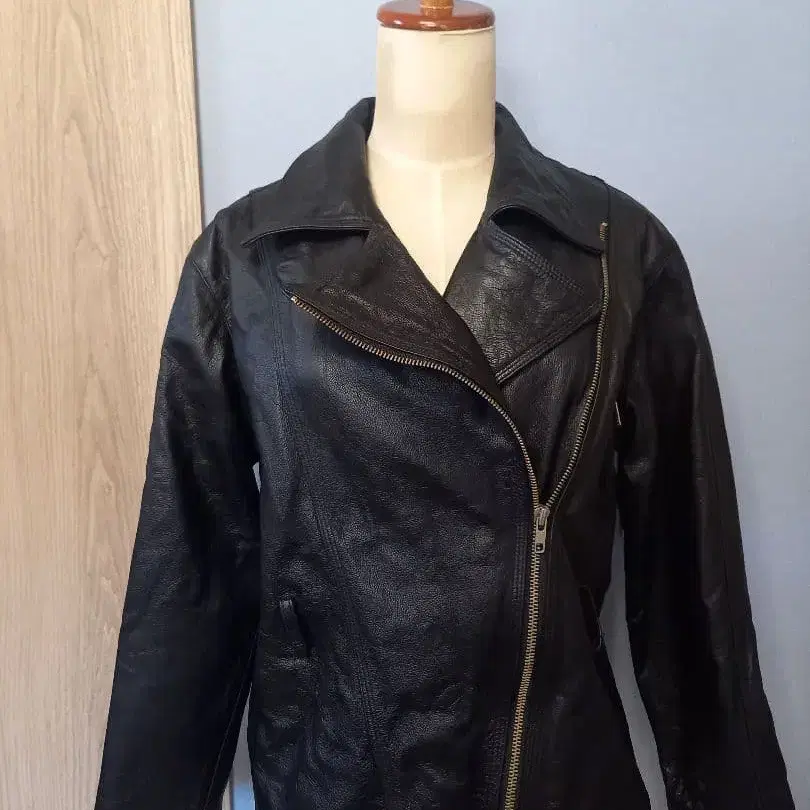 자동 번역되었어요. 원문보기지퍼가 달린 블랙 리얼 가죽 라이더 자켓, 숏 기장으로 소매에도 지퍼가 있어 스타일리시합니다.