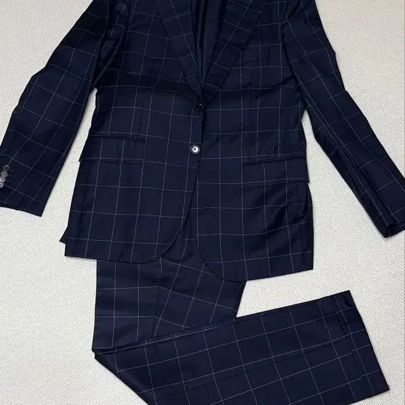 SOVEREIGN 네이비 체크 무늬 수트 48