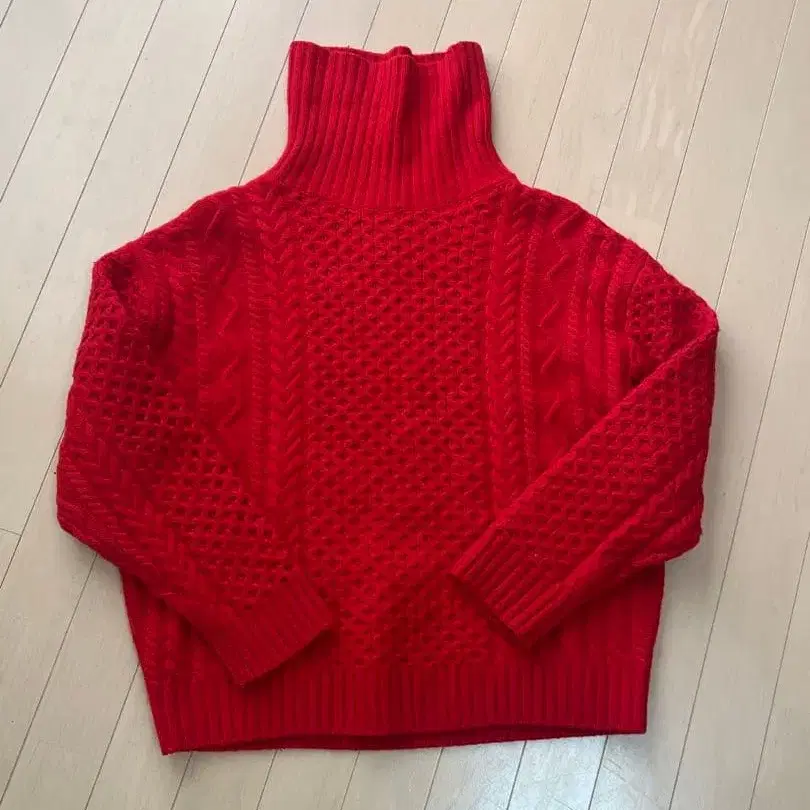유나이티드 애로우즈 빨간색 터틀넥 케이블 니트 스웨터