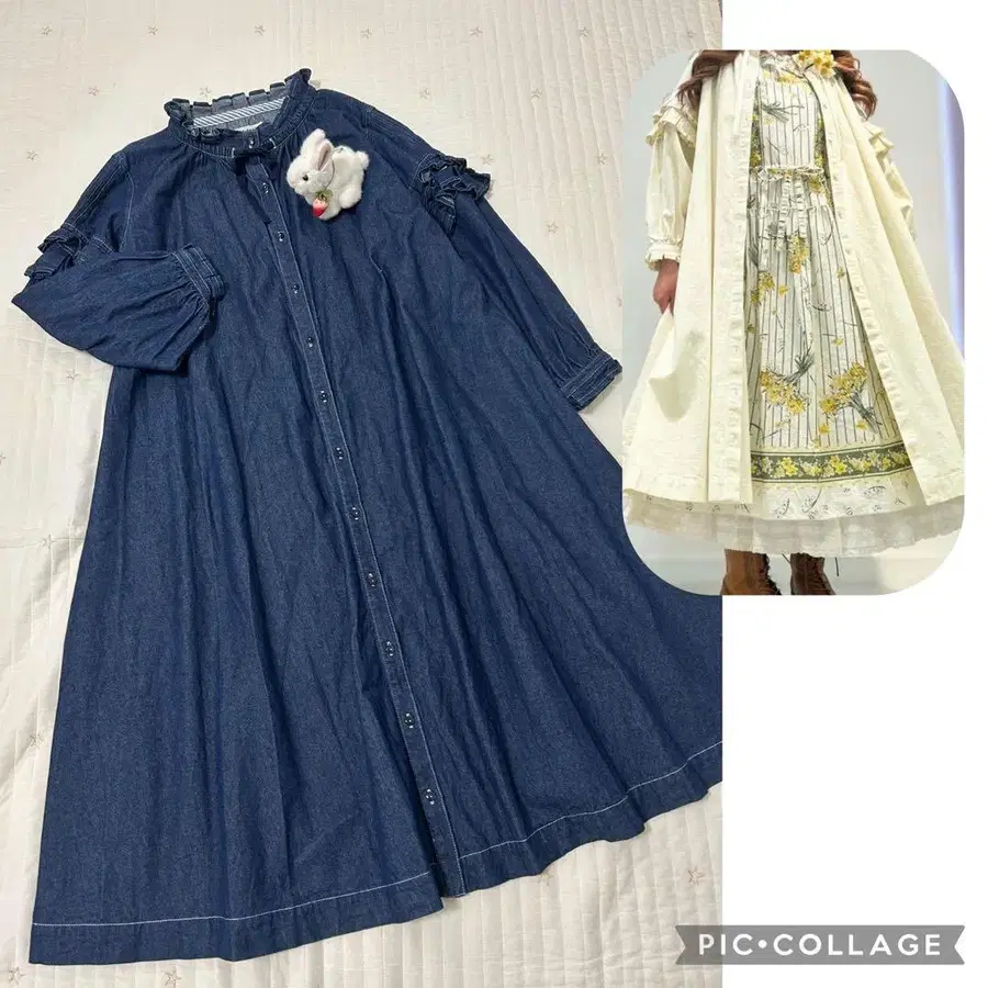 핑크하우스 긴팔 데님 원피스 턱 던가리 면 2024