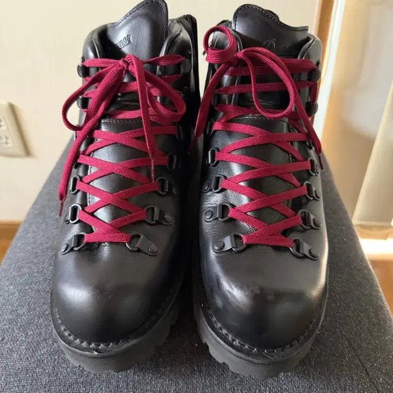 블랙 가죽 하이컷 부츠 빨간색 신발끈