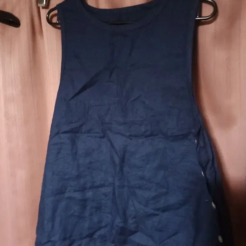 cloudbnine 네이비 헴프 100% 슬리브리스 튜닉 버튼 포함