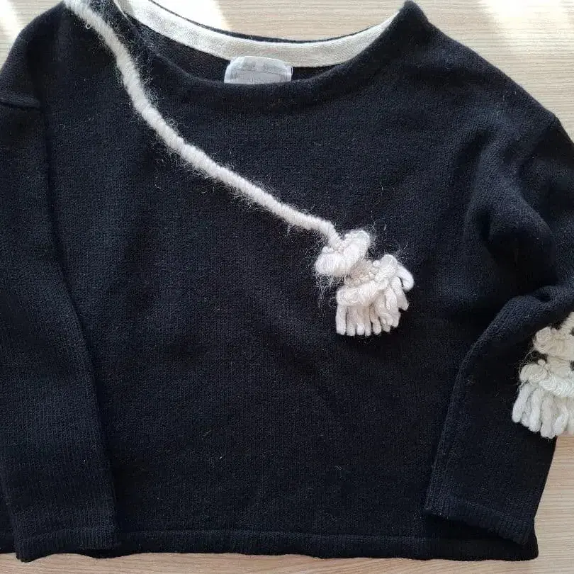 비어즐리 프린지 로프 자수 니트 블랙 여성용