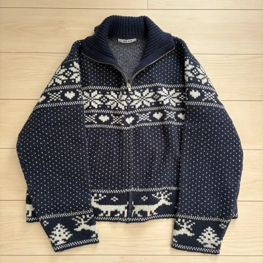 새상품급 [ 3L XXL ] 노르딕 무늬 지퍼 가디건 빅 사이즈 네이비