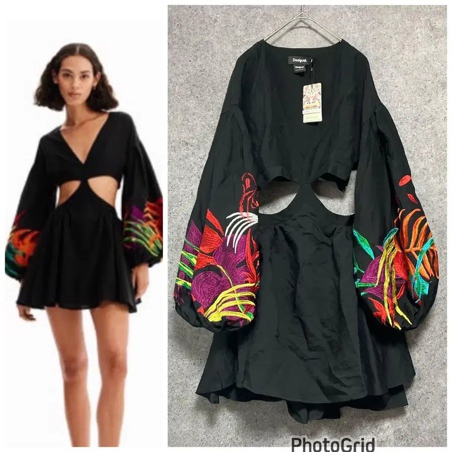 새상품 데시구알 Stella Jean 자수 컷 아웃 원피스 블랙 S