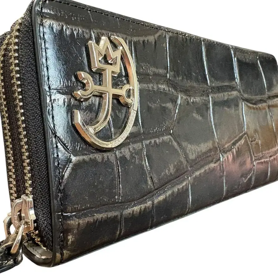 • J&M DAVIDSON 다크 네이비 장지갑 라운드 지퍼 박스 포함
