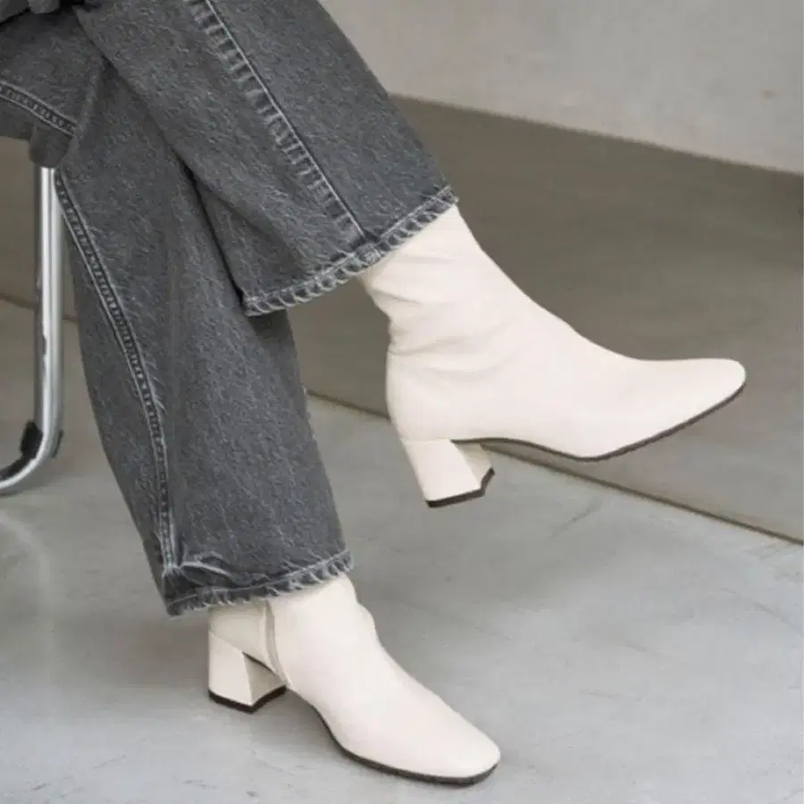 새상품 LE TALON 5cm 스퀘어 핏 숏부츠 아이보리 L
