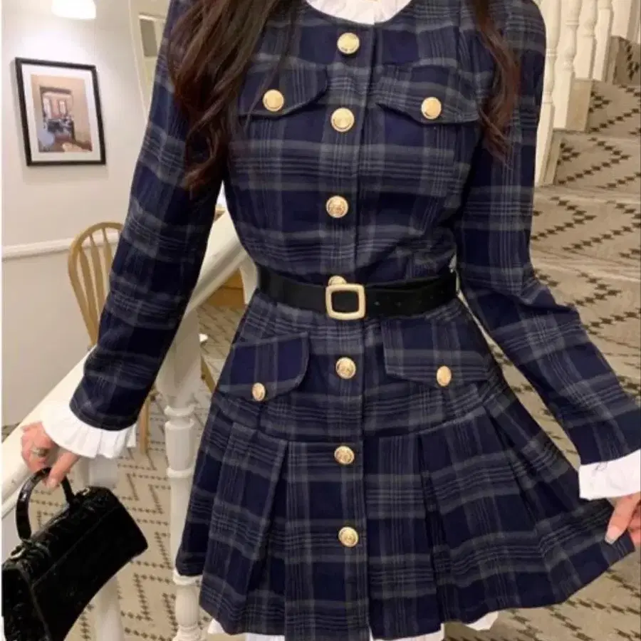 gossip 로스앤젤레스 Y2K 레트로 체크 무늬 미니 원피스 벨트 포함