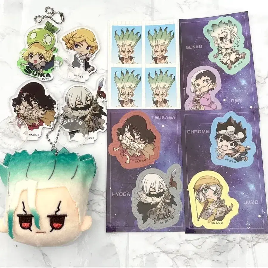 Dr.STONE 이시가미 센쿠 다이소 페이스 봉제 인형 키링 스티커