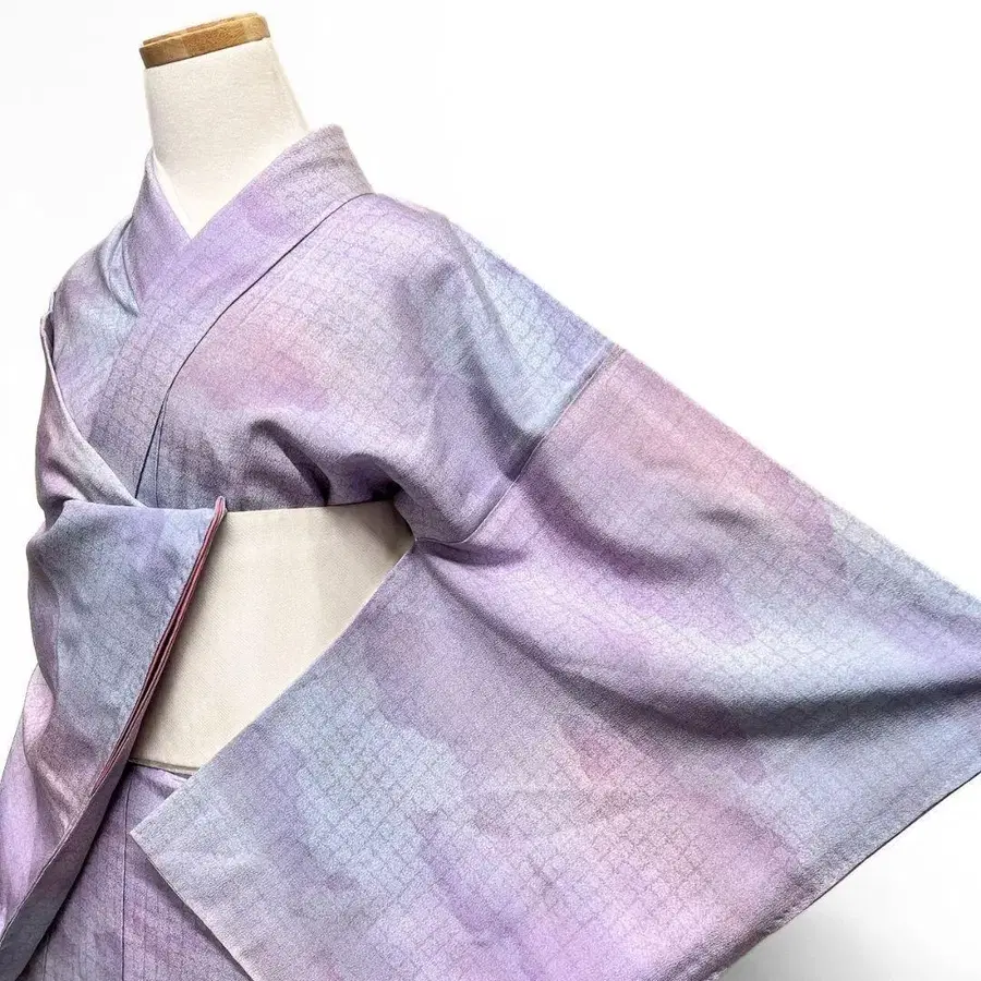 미착용 코몬 격자 구름 무늬 그라데이션 기모노 11 p ms