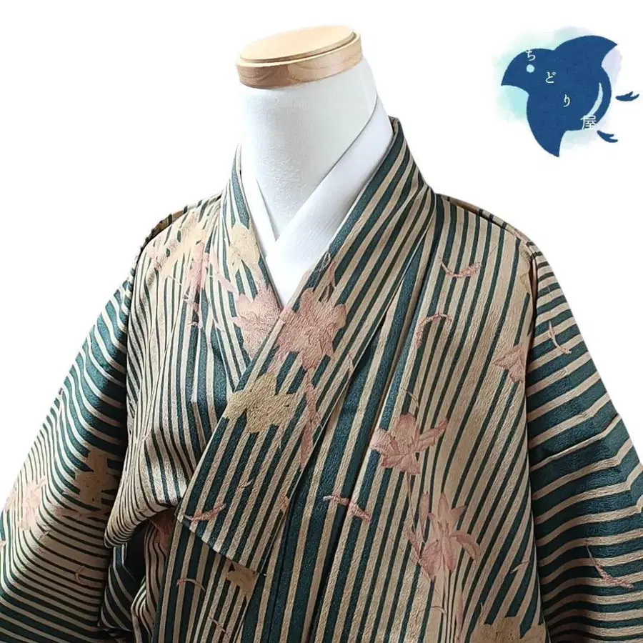 C34 치도리야 기모노 코몬 워셔블 기모노 화학 섬유 그린
