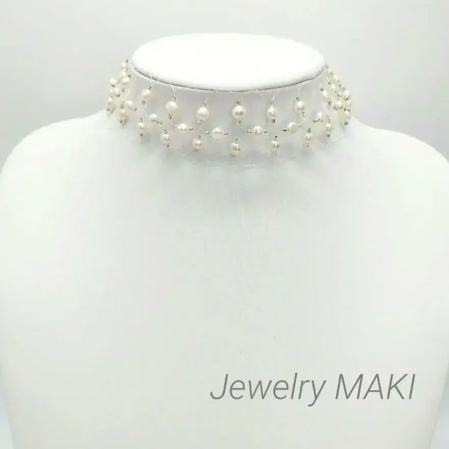 긴자 주얼리 마키 담수 펄 비즈 초커 실버 클로징