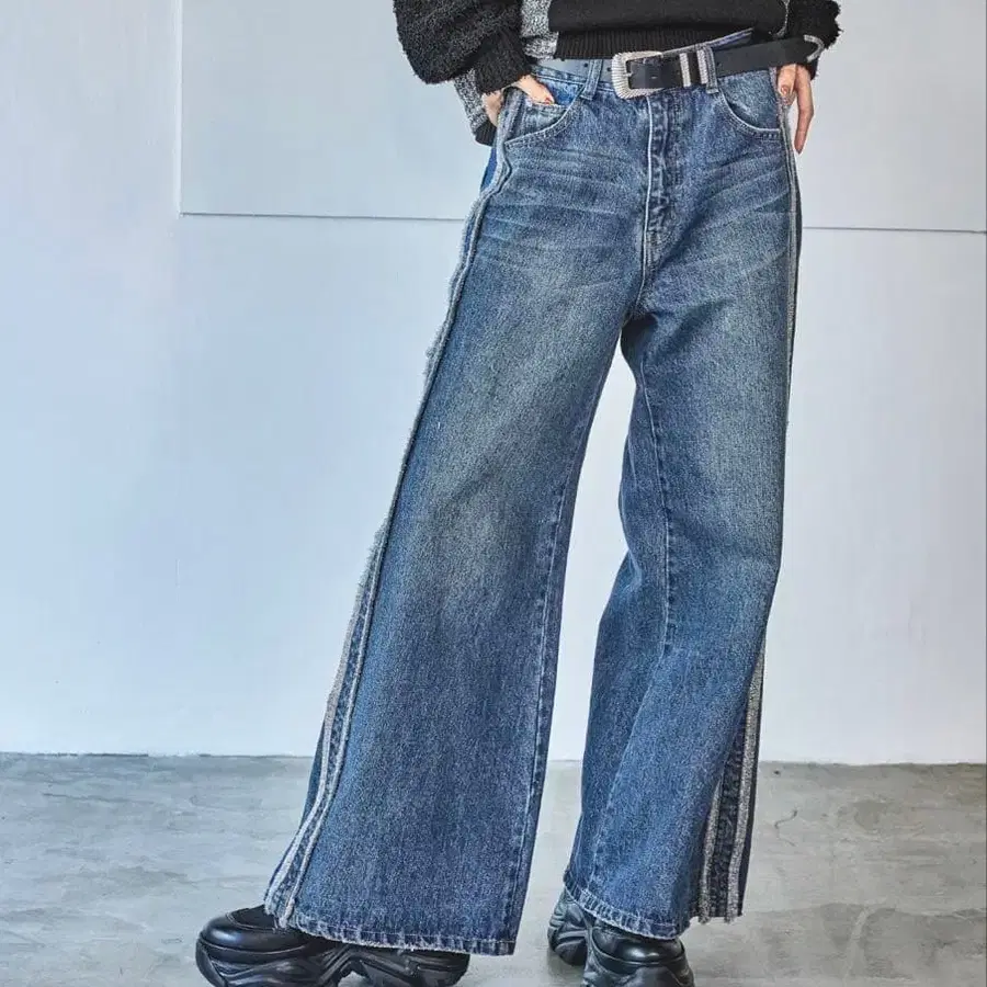 PAGEBOY 프린지 라인 데님 팬츠