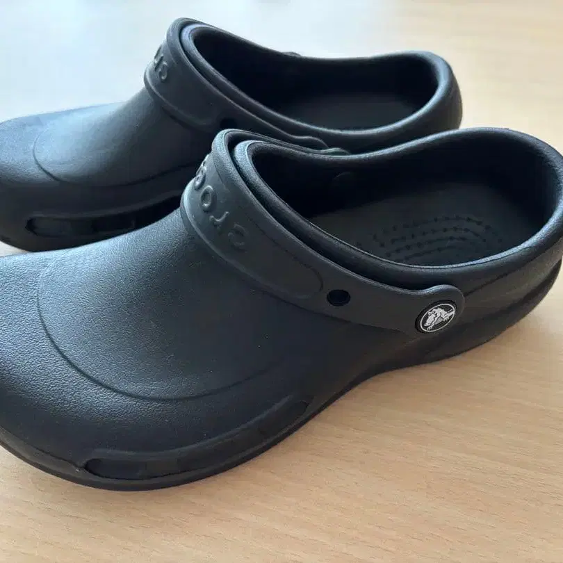 합성수지 소재의 블랙 클로그 샌들, 쾌적한 착용감.