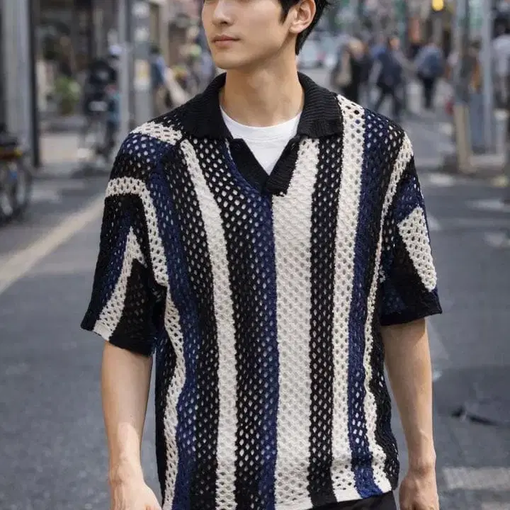 남성용 블랙 메쉬 시스루 반팔 상의 S