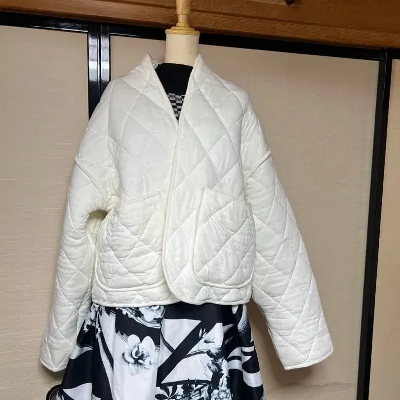 컨디션 최상 ZARAHOME 화이트 퀼팅 자켓 프리