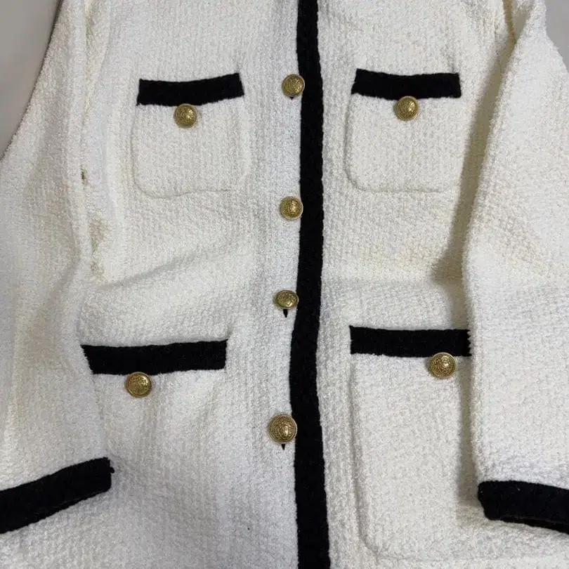 Arpege story 노카라 자켓 화이트/블랙 M 사이즈