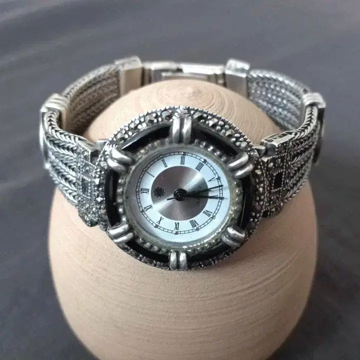 마카사이트 실버 메탈 밴딩 손목시계 MK01 로마 숫자