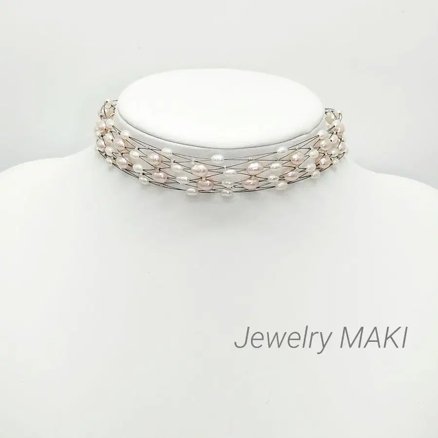 긴자 주얼리 마키 초커 담수 펄 비즈 실버 클로징