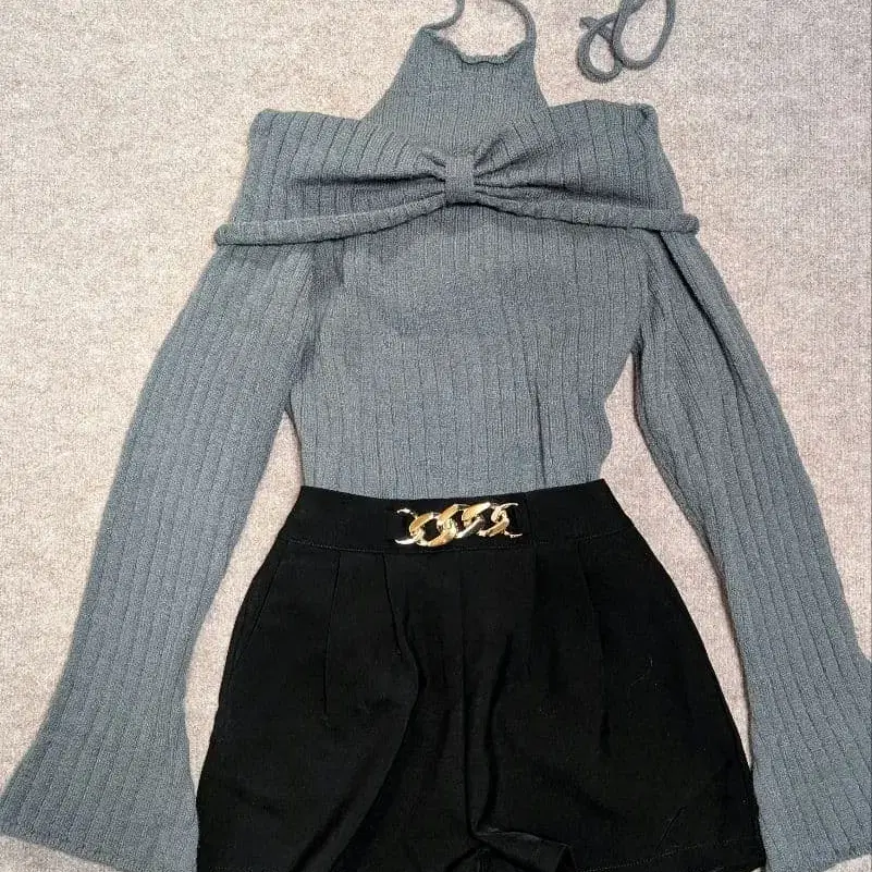 오프숄더 니트 팬츠 셋업