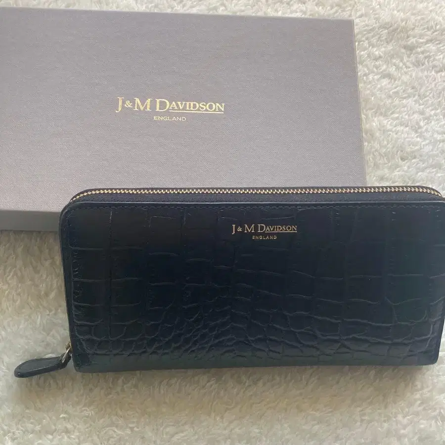 J&M DAVIDSON 라운드 지퍼 장지갑 가죽 악어 무늬 블랙