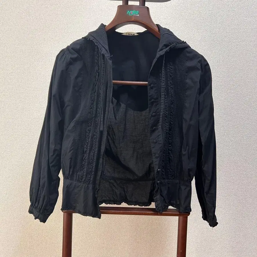 잉게보그 후드 블라우스 오버 블라우스 후드 블랙 피코 프릴