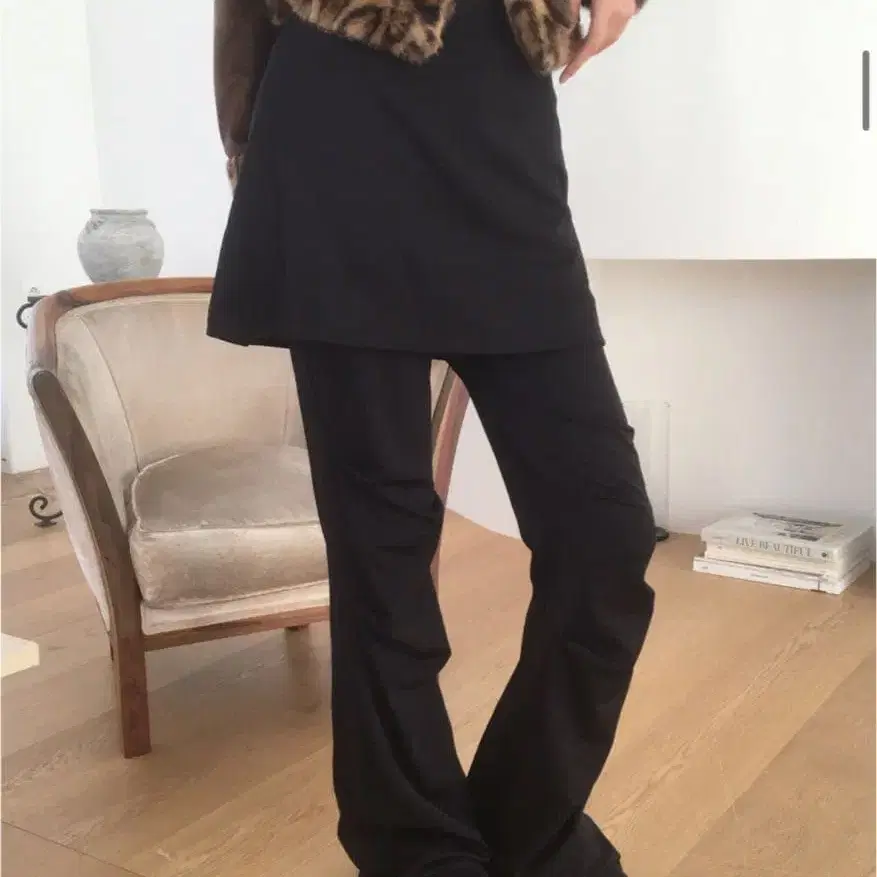 원더원더 턱 입은 부츠컷 스커트 팬츠 black