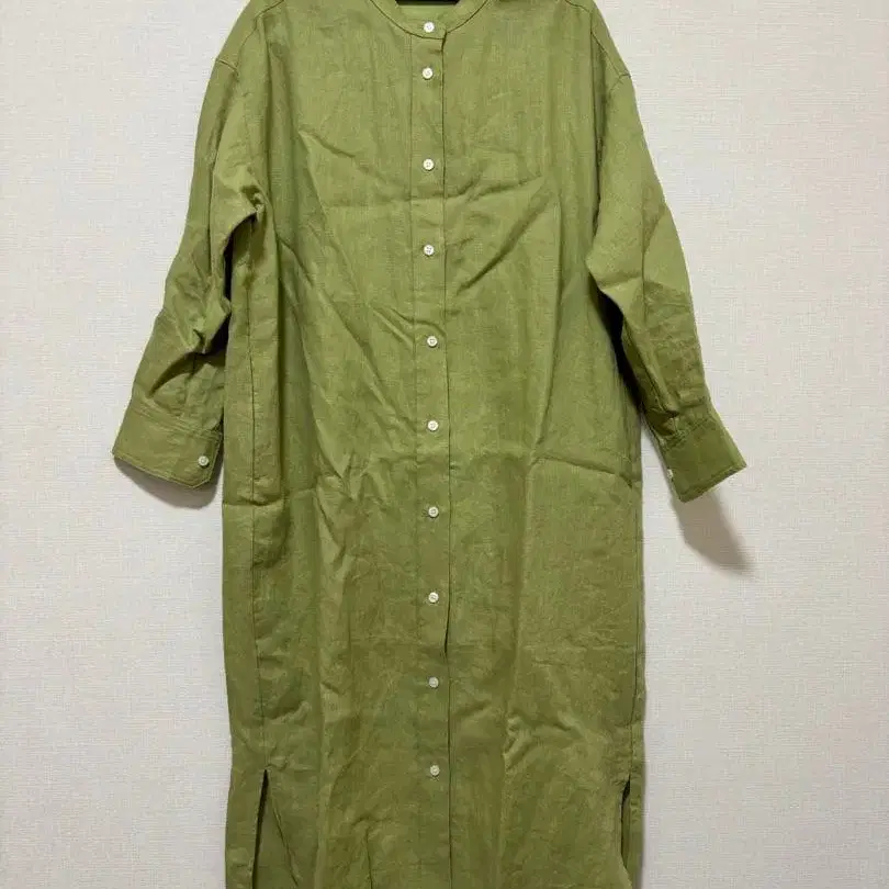 우타오 린넨 긴팔 셔츠 원피스 프리 사이즈 그린