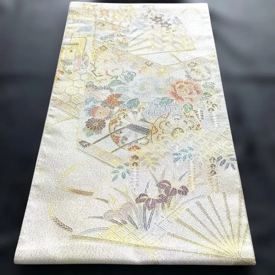 후쿠로 오비 꽃무늬 부채 무늬 실크