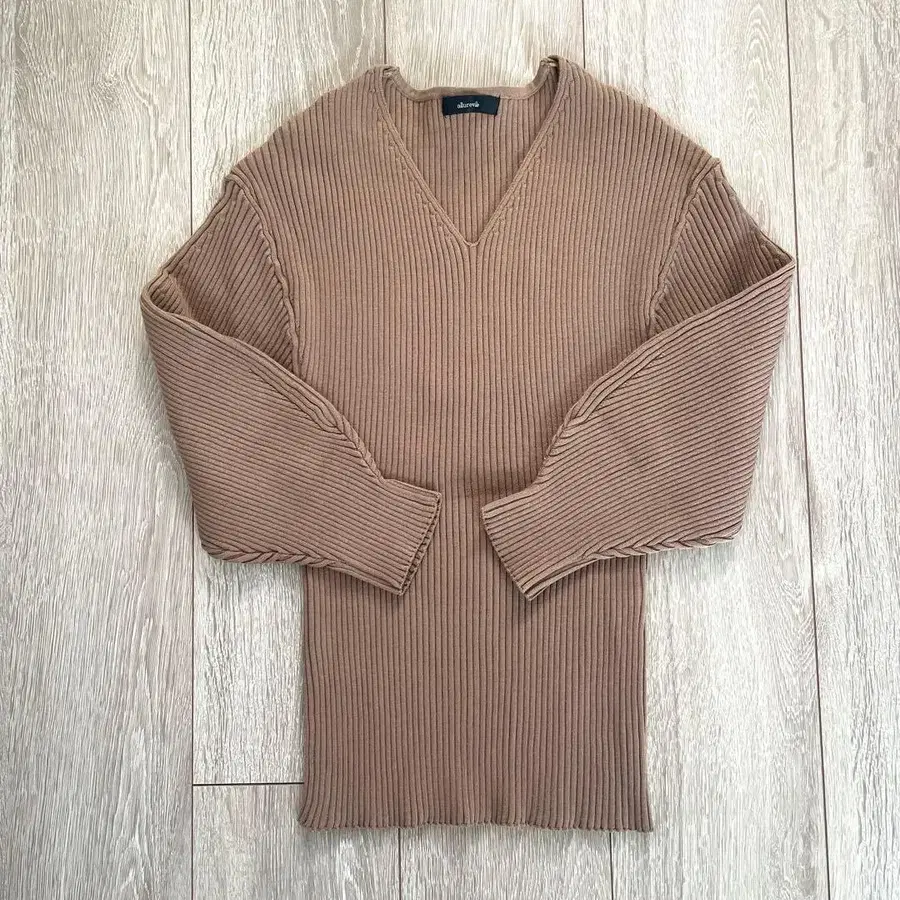 아치 슬리브 리브 V넥 풀오버