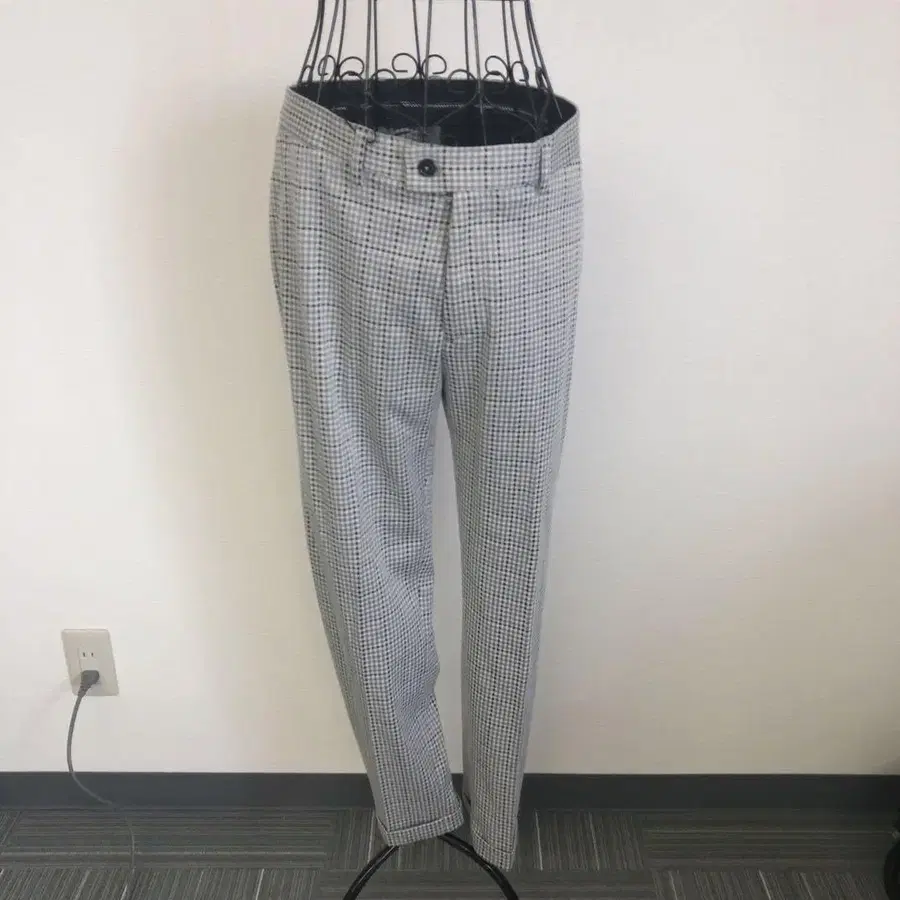 연말 세일 자라 테이퍼드 팬츠 그레이 계열 체크 슬랙스 버튼 포함
