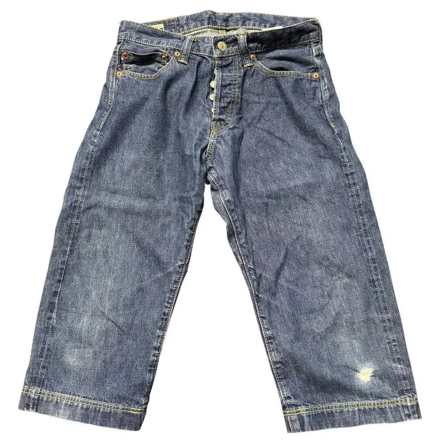 모모타로 진즈 W28 데님 버튼 플라이 인디고 크롭 팬츠