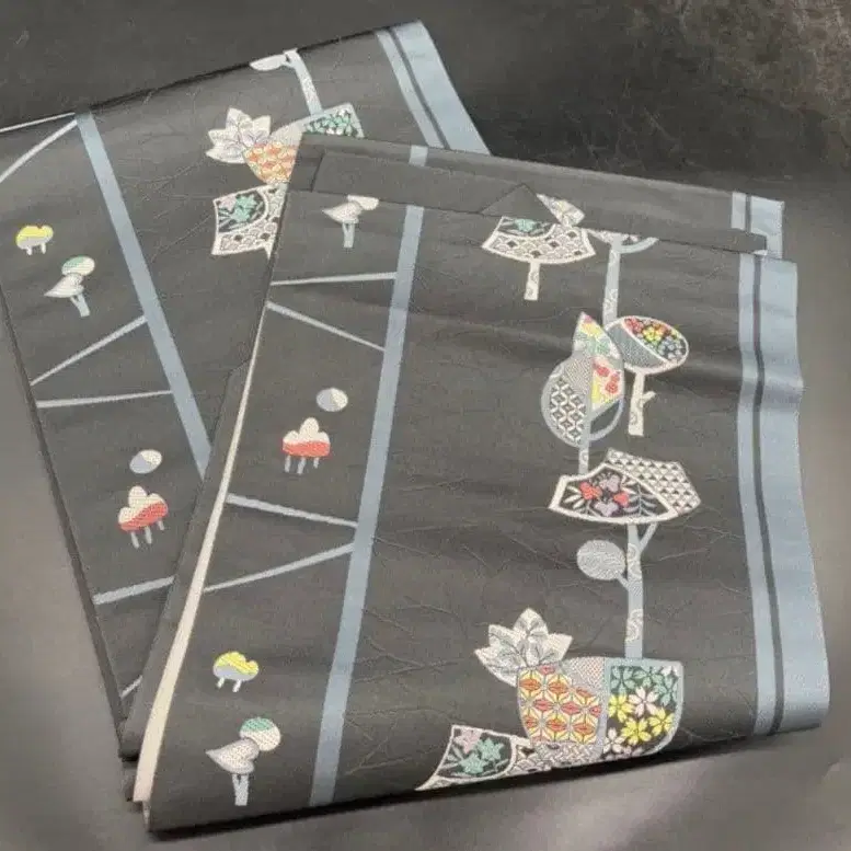 고급 순수 실크 샤레 오비 나고야 오비 앤티크 블랙 계열