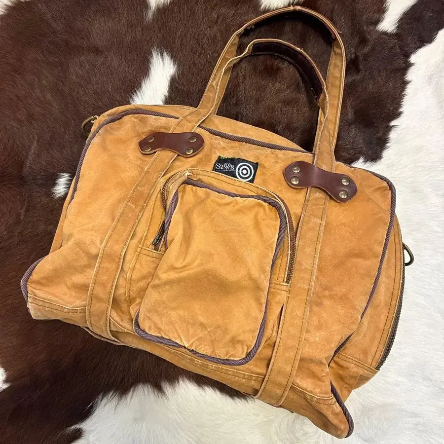 사이즈 ONE. 실측치수, ● 세로 33cm. ● 가로 41.5cm. ● 폭 12.5cm. 네펜데스가 전개하는 브랜드, south2 west8의 2WAY 숄더백입니다. 구형 택이 달린 컬러는 브라운. 빈티지 사냥 자켓 등에서 볼 수 있는 덕 원단으로 튼튼하게 제작된 좋은 상품입니다. 숄더 스트랩은 카라비너로 탈부착이 가능합니다. 핸드 스트랩은 바닥면을 한 바퀴 도는 듯한 빈티지에서도 볼 수 있는 디자인입니다. 외부에 지퍼 포켓도 달려 있습니다. 가죽 부품도 소가죽이 사용되었으며, 덕 원단과 소가죽의 적절한 에이징이 빈티지를 느끼게 하는 아이템입니다. 컨디션은 숄더 스트랩에 마찰로 인한 데미지가 있습니다. 덕 원단에 마찰이나 구김이 있지만, 빈티지스러운 분위기로 즐겨주시면 좋겠습니다. 어디까지나 중고품이므로, 이해해 주시는 분만 구매 부탁드립니다. south2 west8 사우스투웨스트에이트 NEPENTHES 네펜데스 구형 택 2WAY 숄더 백 브라운 덕 헌팅 아웃도어 디자인 캐주얼 스트릿 아메카지 미국 빈티지 빈티지 구제 의류 90s 90년대 Y2K 2000년대