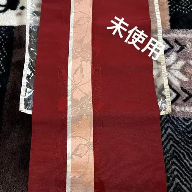 오비 기모노 일본 의류 와인 레드 꽃 무늬 미사용품