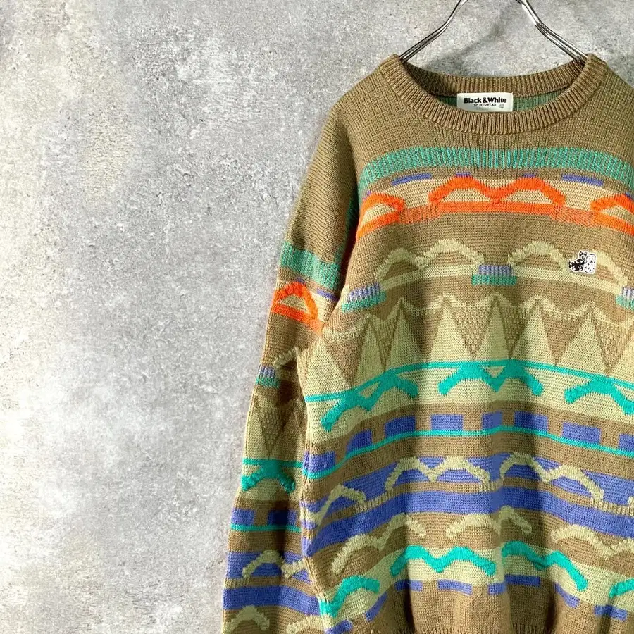 Black&White 니트 스웨터 브라운 올 패턴 로고 와펜 강아지