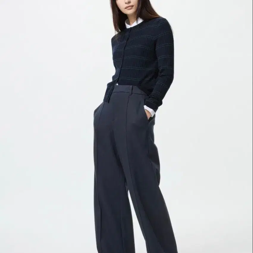 [미사용 새상품] UNIQLO 브러쉬드 저지 와이드 팬츠 네이비 M