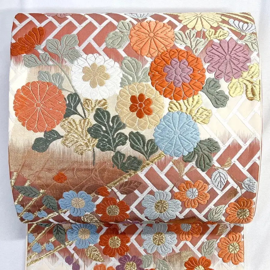 • 를 음 나고야 오비 캐주얼 꽃무늬 베이지 자수풍