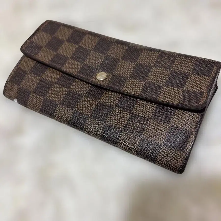 다미에 패턴 브라운 가죽 접이식 지갑