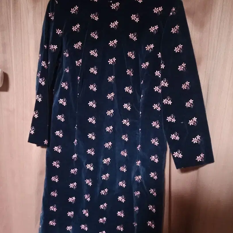 차이나복 네이비 꽃무늬 자수 긴팔 원피스