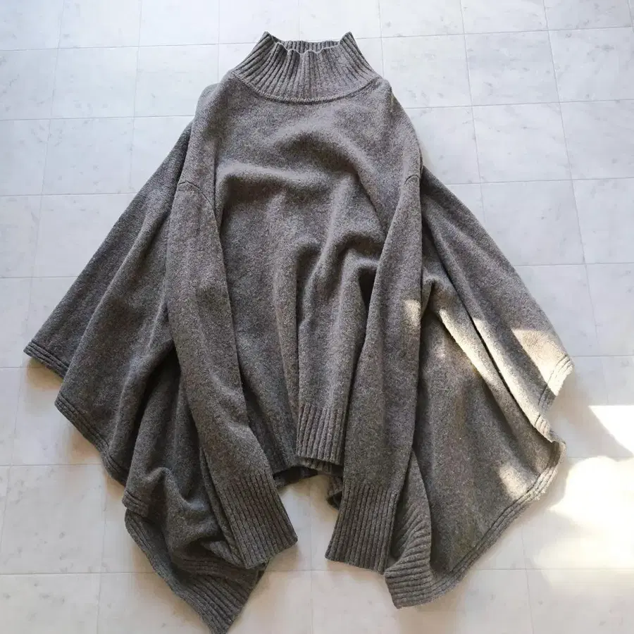 • [ 새상품 미사용 ] 45R 케이블 짜임 판초 타입 터틀넥 스웨터