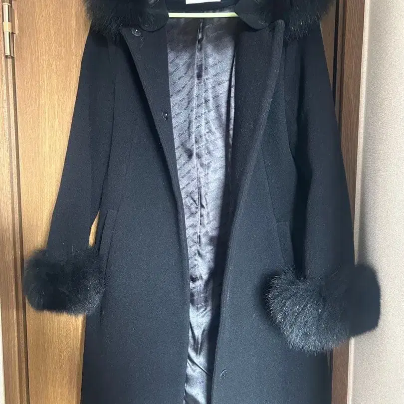 ROYAL PARTY 후드 부착 블랙 롱 코트