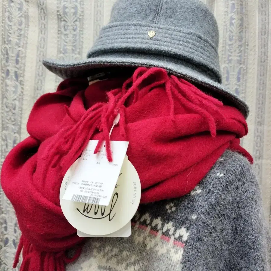 MILA OWEN 새상품 가격표 포함 양모 100% 대형 스톨 8580엔